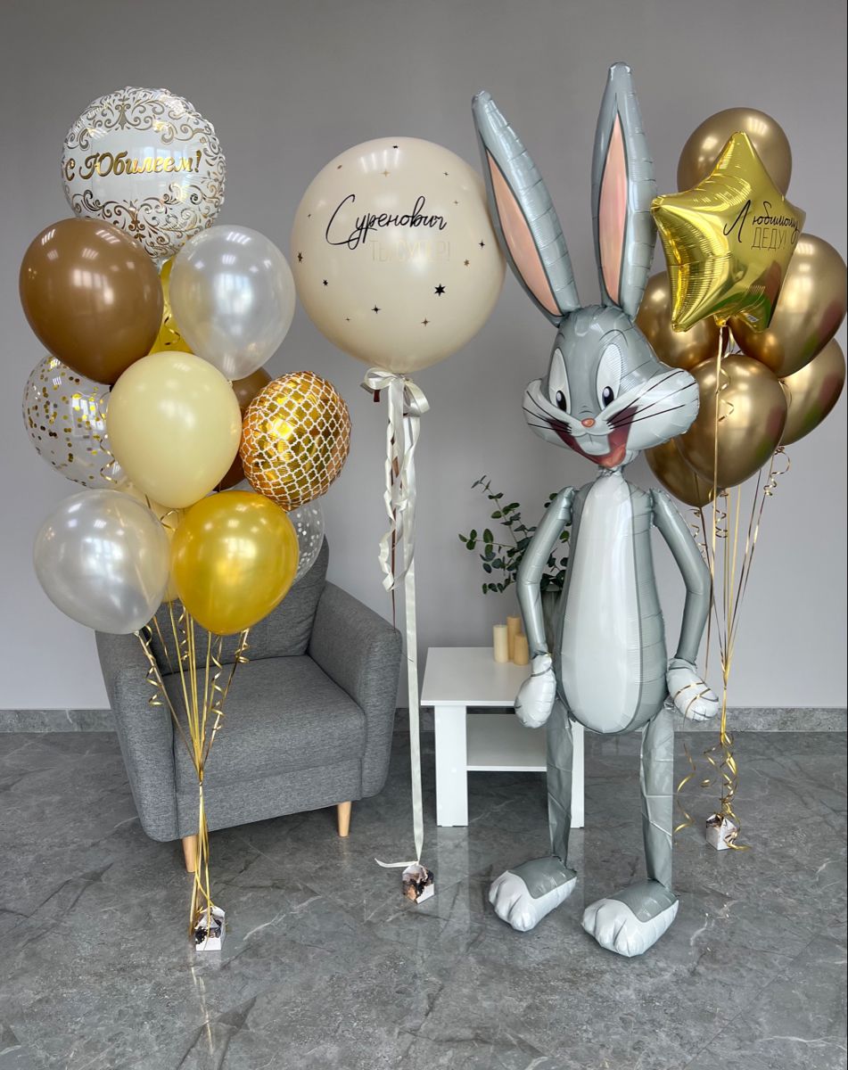 Готовое решение «Золотой сюрприз» в интернет-магазине OCEAN BALLOONS. Заказать с доставкой! Тел.: +7 (495) 773-43-75.